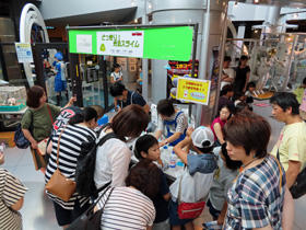 7/18(土)・19(日)、23(木)~26(日) 偏光万華鏡 8/1(土)~5(水) ぶっとびロケット 6(木)~10(月) ミニブーメラン 11(火)~16(日) 色変わりアクセサリー(サーモクロミズムアクセサリー) 17(月)~19(水)、22(土)・23(日) スイ~ットレイ(ホバークラフト) ※ 開始・終了時刻、実験・工作内容は、変更になる場合があります。 ※ 材料がなくなり次第終了です。 |