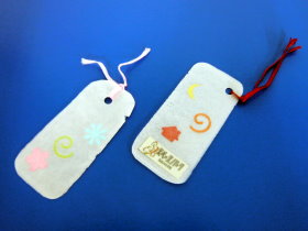 最後に穴あけパンチで好きな所に穴をあけ、リボンを通せば、しおりの完成です。一般的な白い食品トレーで作ってもきれいですが、色付きや柄が描かれている食品トレーで作るのもお薦めです。