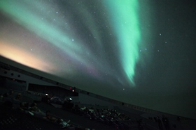 宇宙劇場がアラスカの空になる!オーロラ生中継プロジェクト「Live!オーロラ」の協力でアラスカとライブで結び、オーロラの様子を生中継でプラネタリウムのドームスクリーン全天に投映いたします。 北緯65度の"いま"のオーロラをいっしょに体感しましょう。