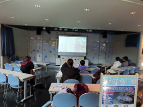 上映会では、折り紙の科学、生きた化石として知られるシーラカンスの研究、恐竜よりも古いペルム紀の化石研究、そして、二酸化炭素を減らす新しいコンクリートなどについての映像を上映しました。