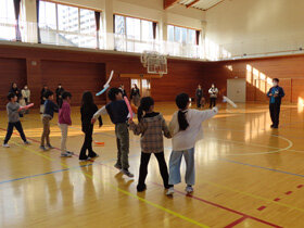 最後に体育館で風船ロケットを飛ばしました。遠くあり、上あり、回転あり、飛び方は様々です。それぞれに楽しい時間を過ごしました。