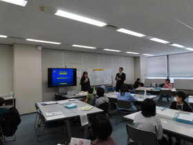 今回は、日本弁理士会の弁理士の原田潤子先生と弁理士の宮北康之先生においでいただき、活動を行いました。テーマは「知財授業 ~君も今日からエジソン~」です。