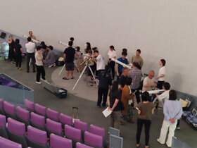 【望遠鏡を使ってみよう】 何だか難しそうに見える「天体望遠鏡」の使い方を、実際に触って体験しましょう。星に向ける、ピントを合わせるといった使い方の一歩から、望遠鏡を組み立てて使うコツまでご紹介します。 |