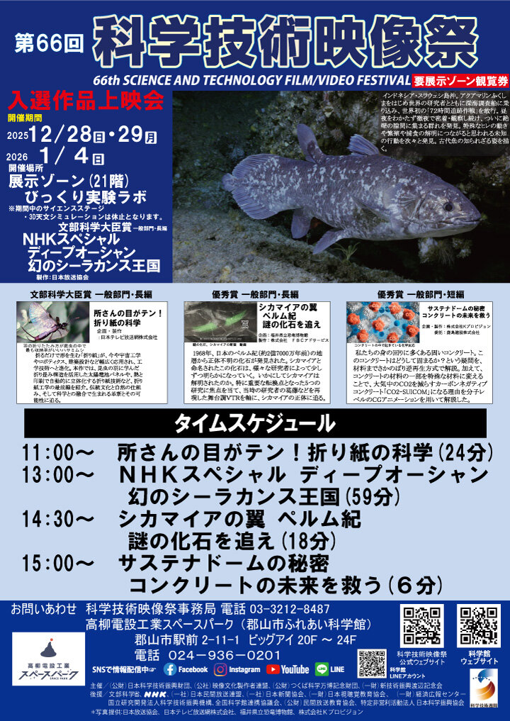 「第66回 科学技術映像祭」で入選した科学映像作品を上映します。