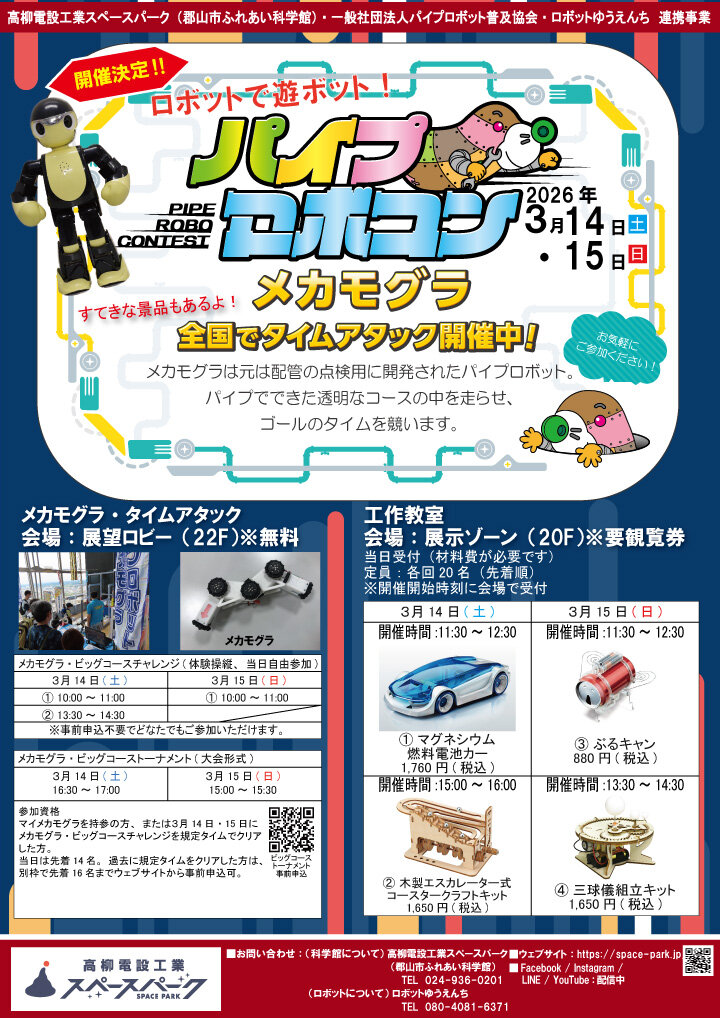 | 協力 | 一般社団法人パイプロボット普及協会、ロボットゆうえんち |