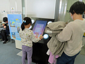 画面にランダムに表示される1~10までの数字を、カメラに向かってゆびの本数で示すとAIが認識してクリアになります。10回クリアするまでの時間もカウントされ、来館者の皆さんは、好タイムを目指してがんばっていました。