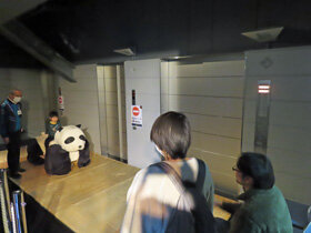 高校の課題研究として、子どもも大人も乗れるパンダカーが製作されました。パンダにちなんだ音楽が流れたり、移動に合わせて後ろ足が動くなどの工夫がされていて、小さなお子さんを中心に大人気でした。